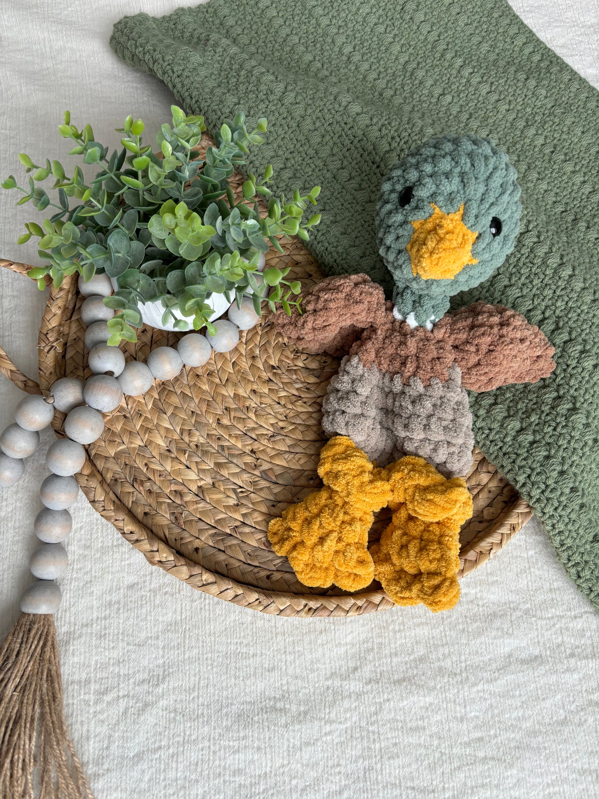Meet the cutest mallard around, the sweetest snuggle companion around. Lovingly crocheted by hand, the small bear features a soft plush body and gentle textures — a perfect blend of cozy charm and character.