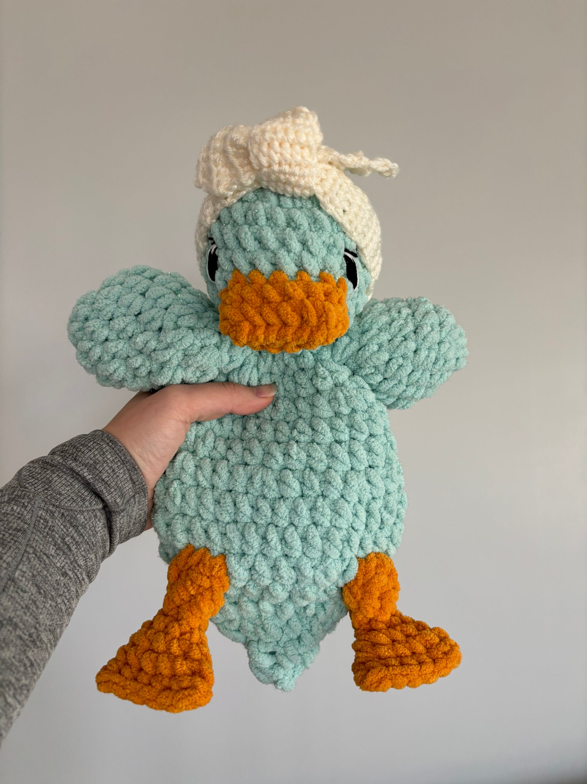 Whether she’s keeping little ones company at bedtime or brightening up a nursery shelf, Sparkly Della brings comfort and smiles wherever she goes. Each duck lovie is made with care, ensuring a one-of-a-kind keepsake that’s just as special as the person who receives her.